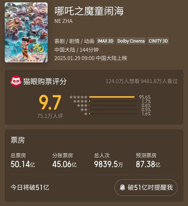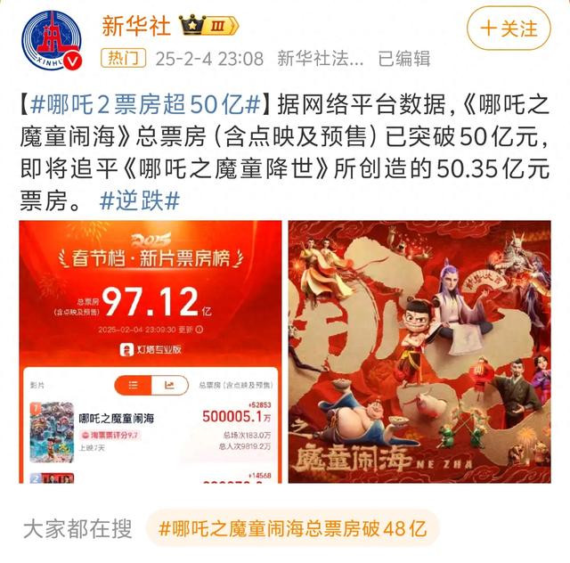 《哪吒2》票房破50亿! 预测总票房高达87亿! 好恐怖的实力!